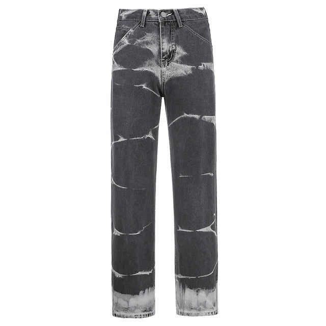 Vaqueros rectos de cintura alta lavados ligeros con cierre de cremallera y material de algodón