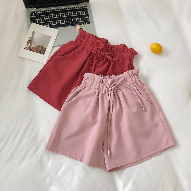 Shorts de poliéster sólido con cintura elástica y cierre con cordón