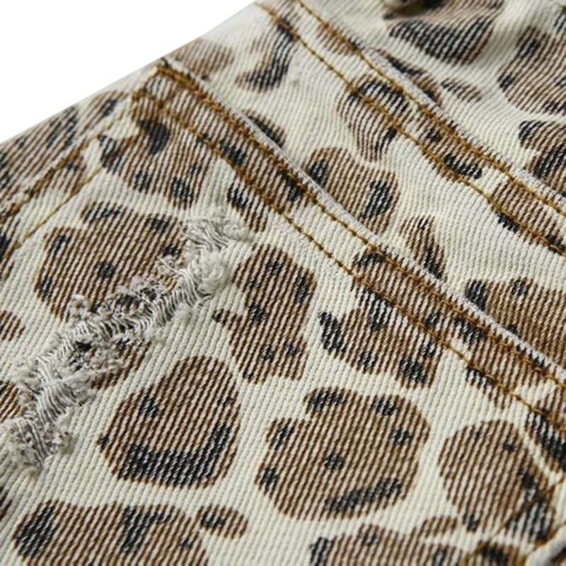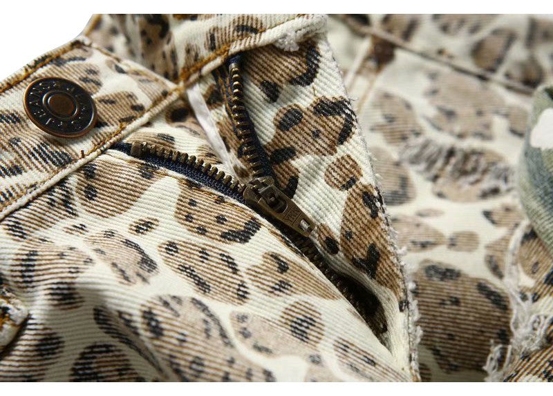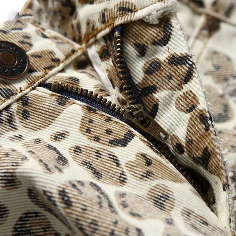 Shorts con estampado de leopardo, bolsillo, bragueta con cremallera y material de algodón y poliéster