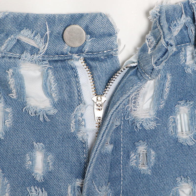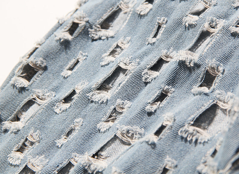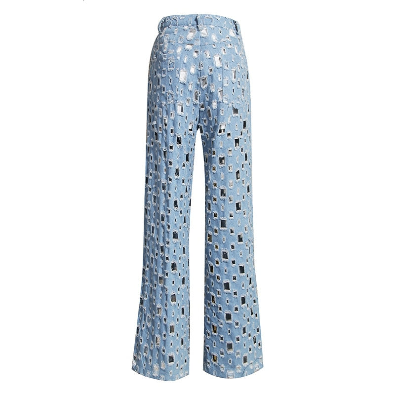 Vaqueros acampanados de poliéster de algodón con lavado claro con estilo hueco de forma cuadrada