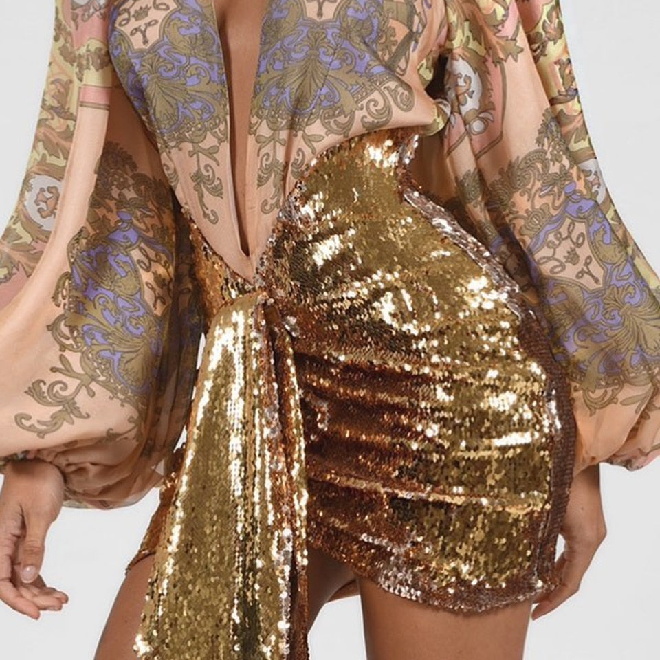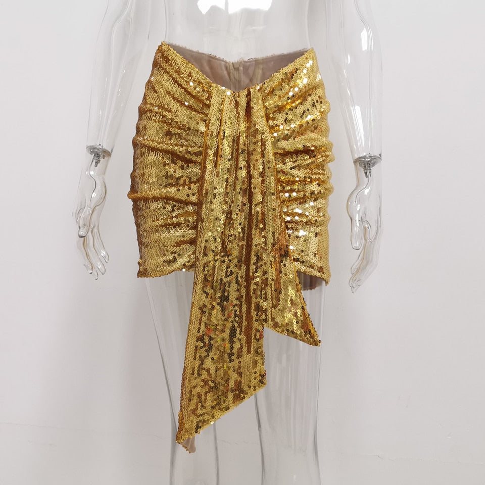 Minifalda fruncida y con lentejuelas con material de poliéster