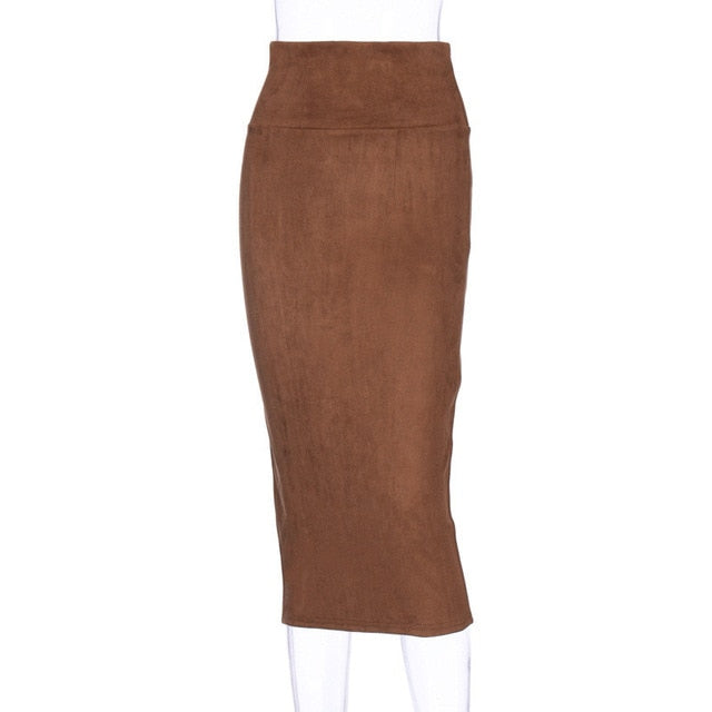 Falda lápiz con cintura empotrada y estampado sólido de poliéster y licra