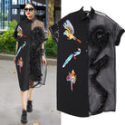 Vestido a media pierna con estampado de animales bordado de gasa de malla de acetato de algodón