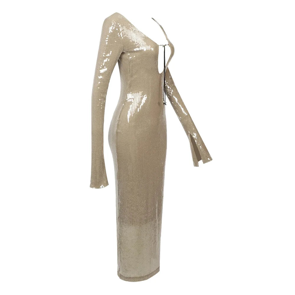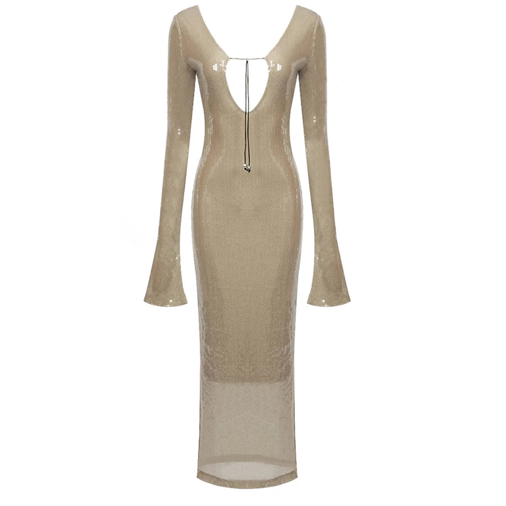 Elevate your style with our maxi dress! This dress is truly a showstopper, with its stunning solid color and eye-catching mesh detailing. And, for an added touch of glamour, delicate sequins adorn this maxi dress. This dress will make you feel confident and effortlessly chic.