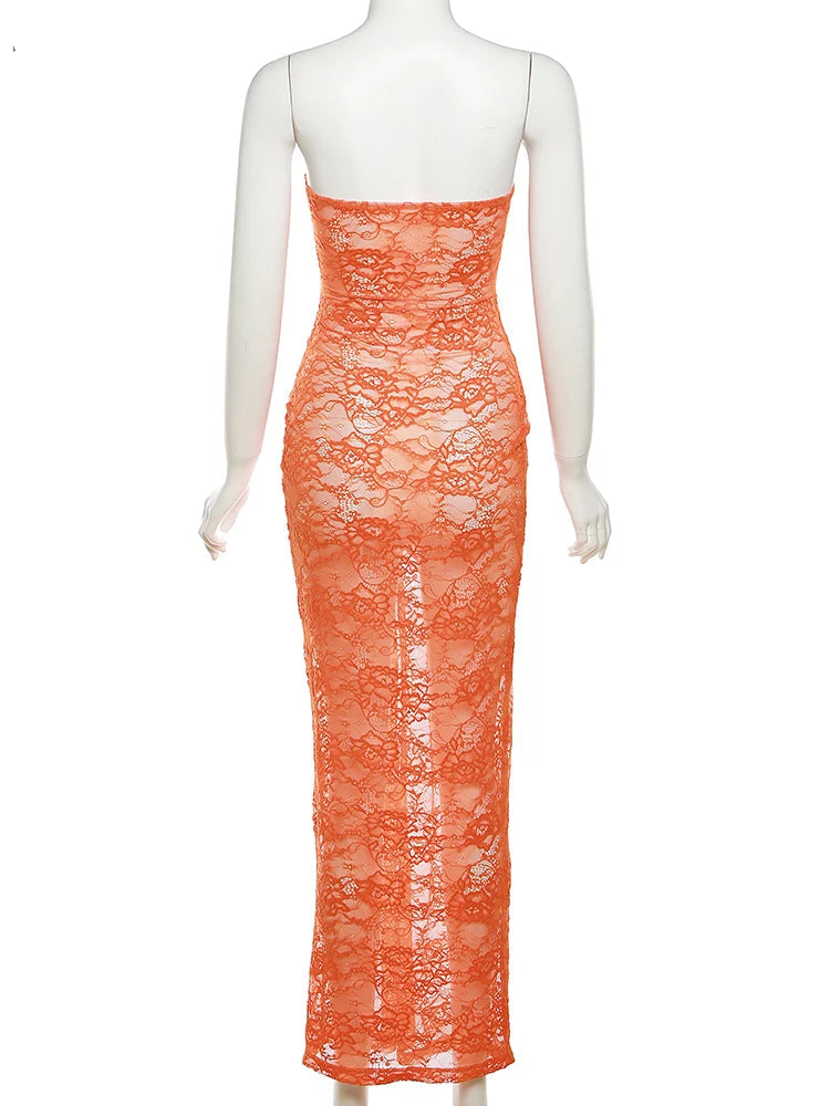 Experience the power of confidence and elegance with our maxi dress! Made with polyester and spandex, this solid dress features delicate lace details that are sure to turn heads. Make a statement at any event with this stunning maxi dress.