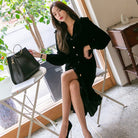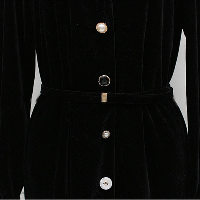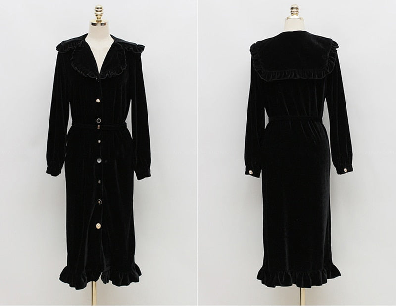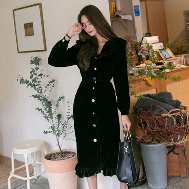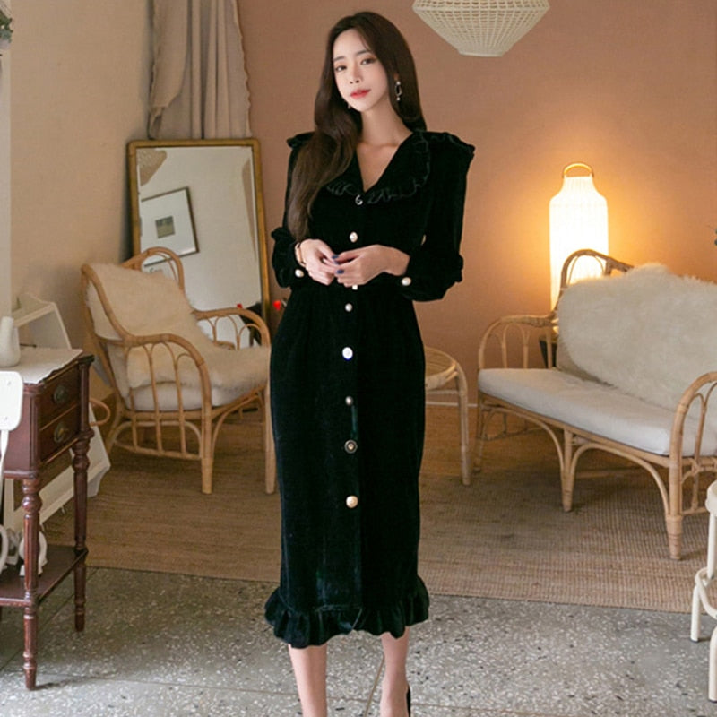 Vestido de decoración de volantes a media pierna de terciopelo de algodón y licra de poliéster