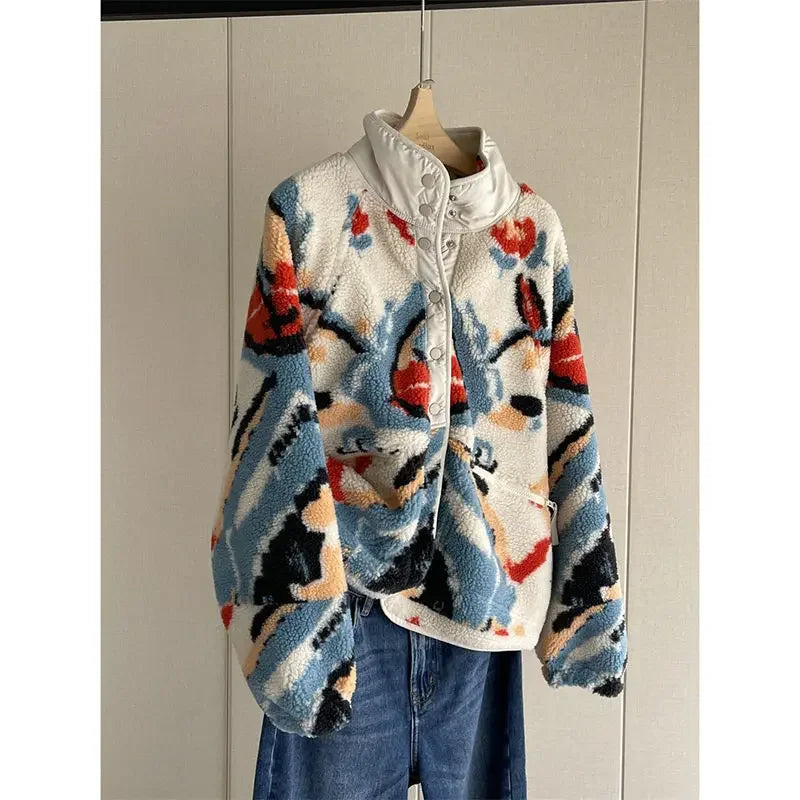 Stay stylish and comfortable with our jacket. This jacket features a unique printed design and is made of durable polyester to withstand any weather. The button closure provides a secure fit, ensuring you'll look and feel your best no matter what.