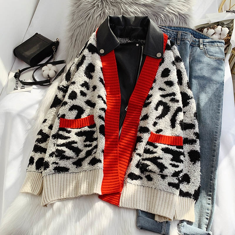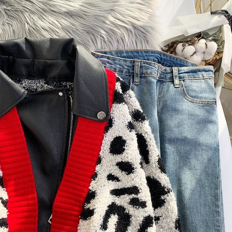 This sweater over leather patchwork style jacket gives a unique look. Featuring a zipper closure, the beautiful geometric pattern is also the perfect way to add some style to your outfit.