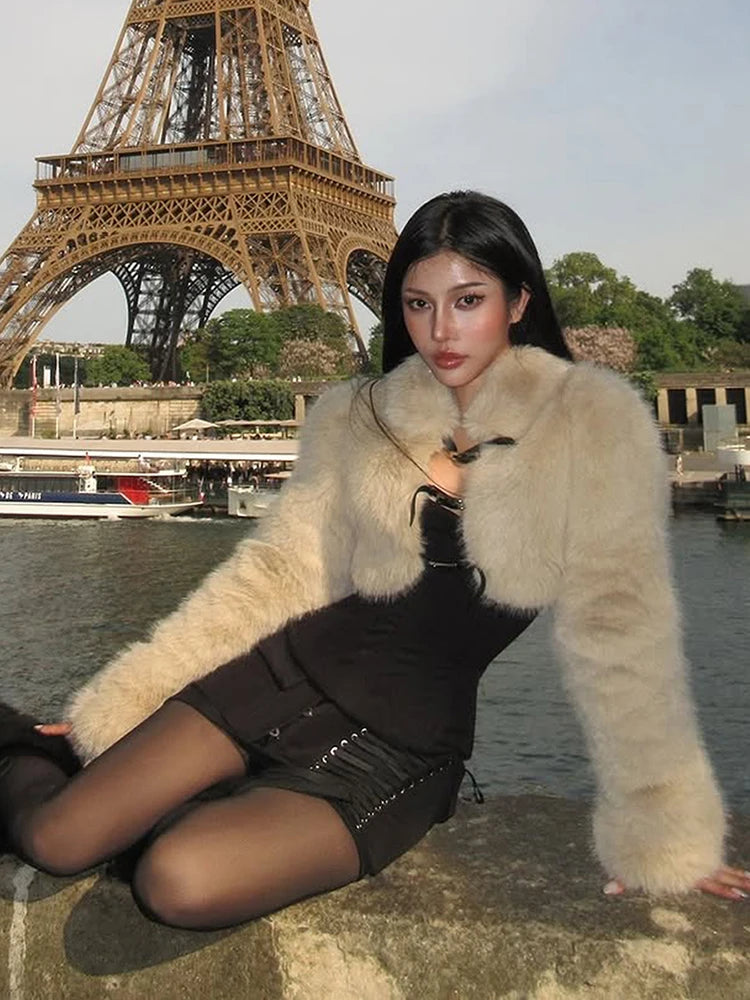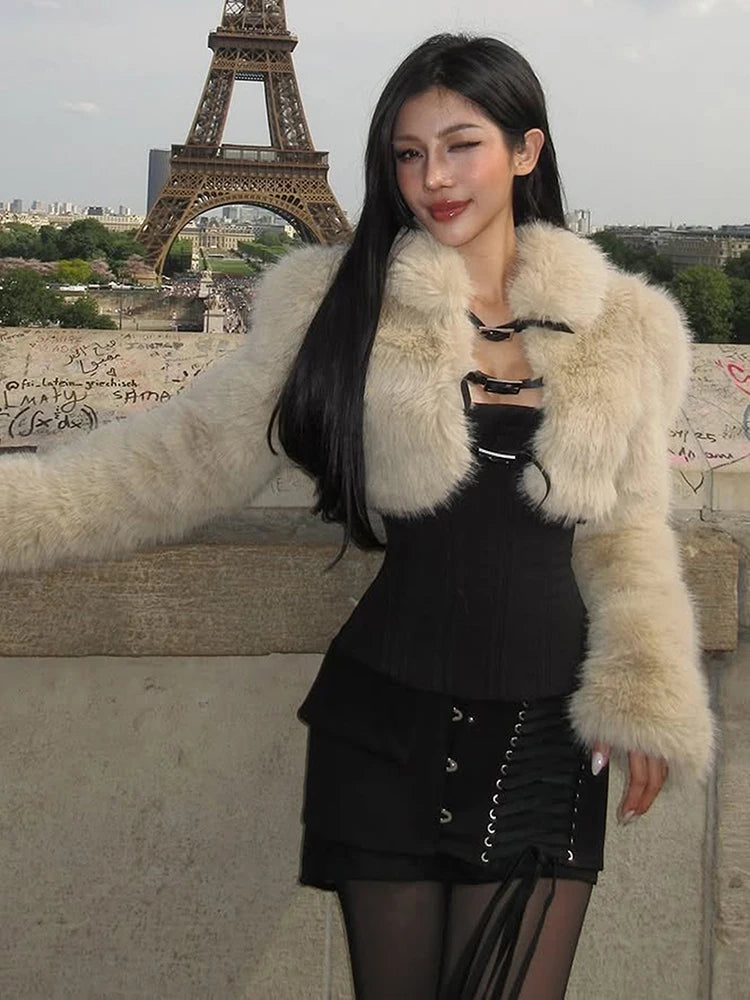 # Noir Rendezvous Crop Jacket Make a bold statement with this daring crop jacket that commands attention. Crafted from sleek polyester, it delivers a sharp silhouette perfect for those who refuse to blend in. The luxurious fur decoration adds an edge of sophistication and texture, elevating your look from ordinary to unforgettable. Whether you're hitting the streets or turning heads at an event, this jacket is your weapon of choice for unapologetic style. Own the room. Own the moment.