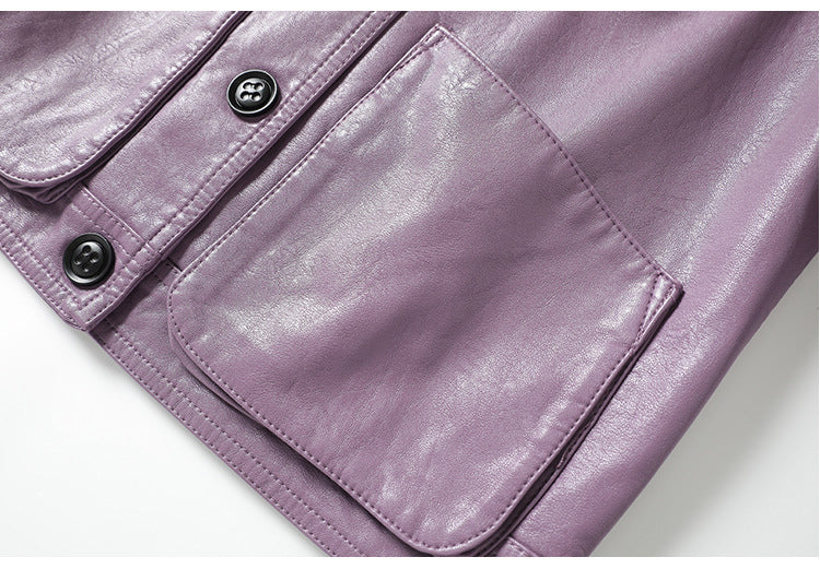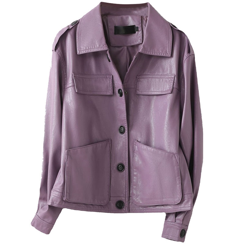 Stylish and on-trend, this faux leather jacket has a unique yet classic design. The vibrant, solid pattern gives off a trendy, youthful vibe that stands out from the crowd. Made from faux leather, this jacket keeps you and your items stylishly protected. The button closure allows for easy on and off, while the turn-down collar provides extra warmth. An easy-to-wear jacket for a variety of occasions.