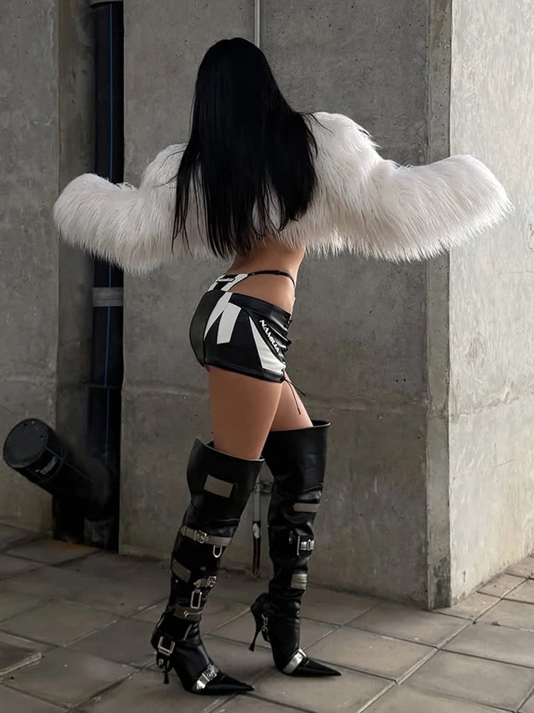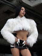 The Velvet Boulevard Crop Jacket is pure provocation. Blending sleek polyester with sumptuous fur, this cropped statement piece refuses subtlety. The luxe fur detailing elevates every angle while the structured polyester base keeps you sharp and in control. This is the jacket for those who walk into a room and own it instantly—a fearless fusion of texture and attitude that transforms any look into something unforgettable.