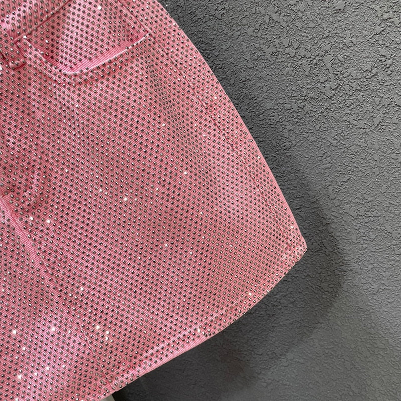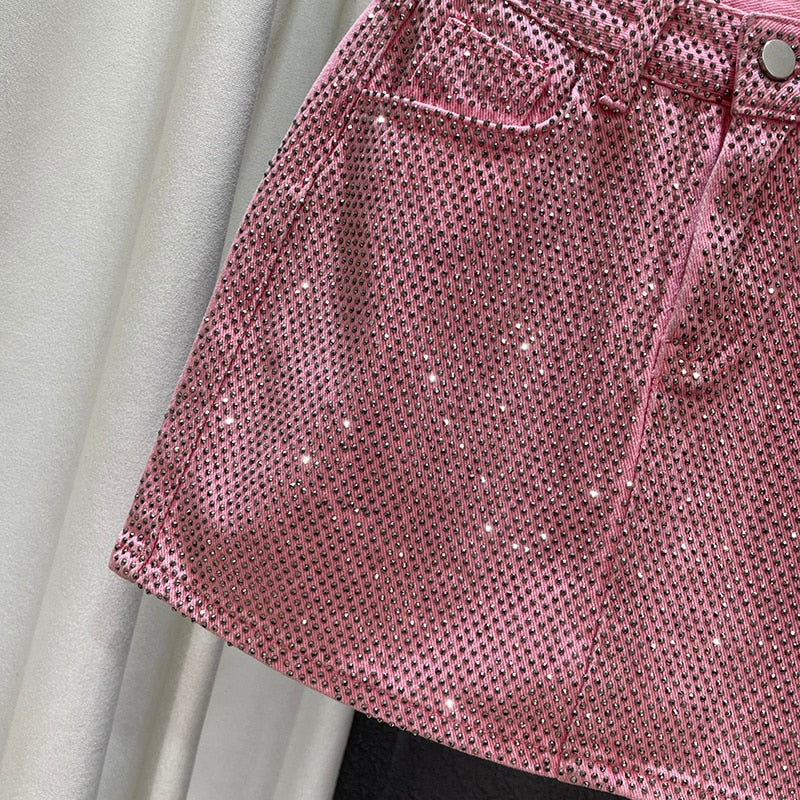This Hold Her Gently Skirt is perfect for any occasion. Featuring a mini denim skirt adorned with full rhinestone embellishments, it offers a unique and stylish look. The quality materials are sure to provide lasting comfort and durability.