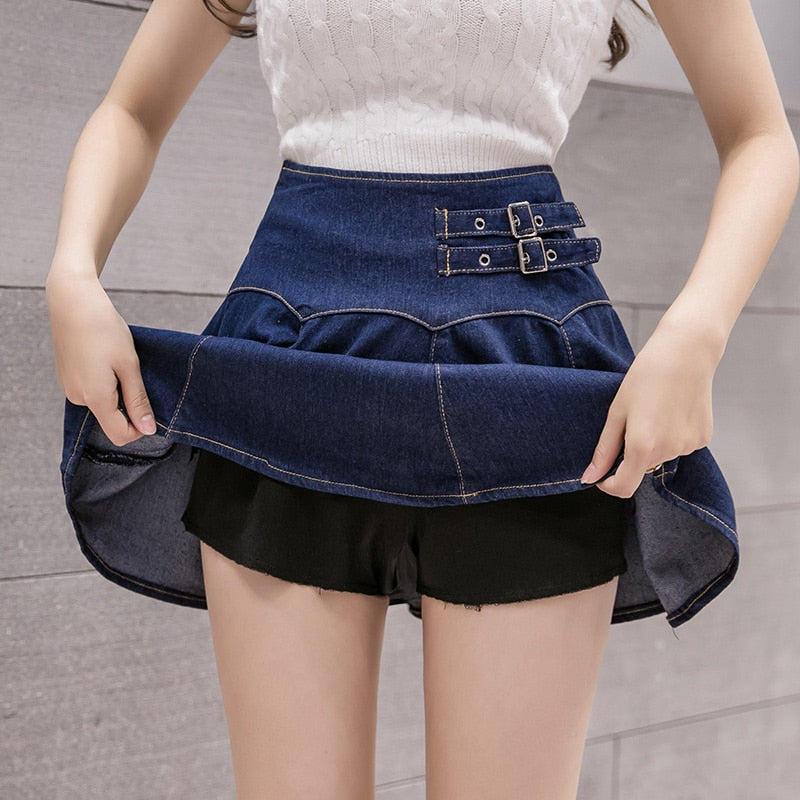 Minifalda plisada por encima de la rodilla de mezclilla sólida