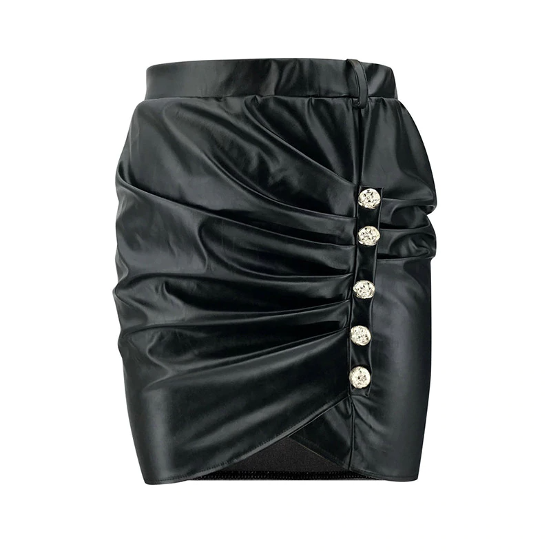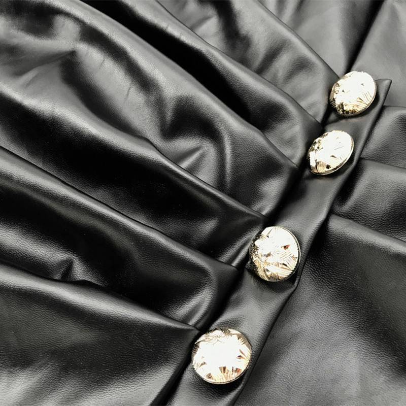 Minifaldas de imitación de cuero con botones de poliéster y estampado sólido