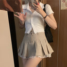 Our women's skirt is made of cotton, pleated, and features a lace decoration. The khaki color is a great choice for anyone who wants to add a touch of sophistication to their wardrobe. This skirt can be worn with a casual top or dressed up with a blouse and heels.