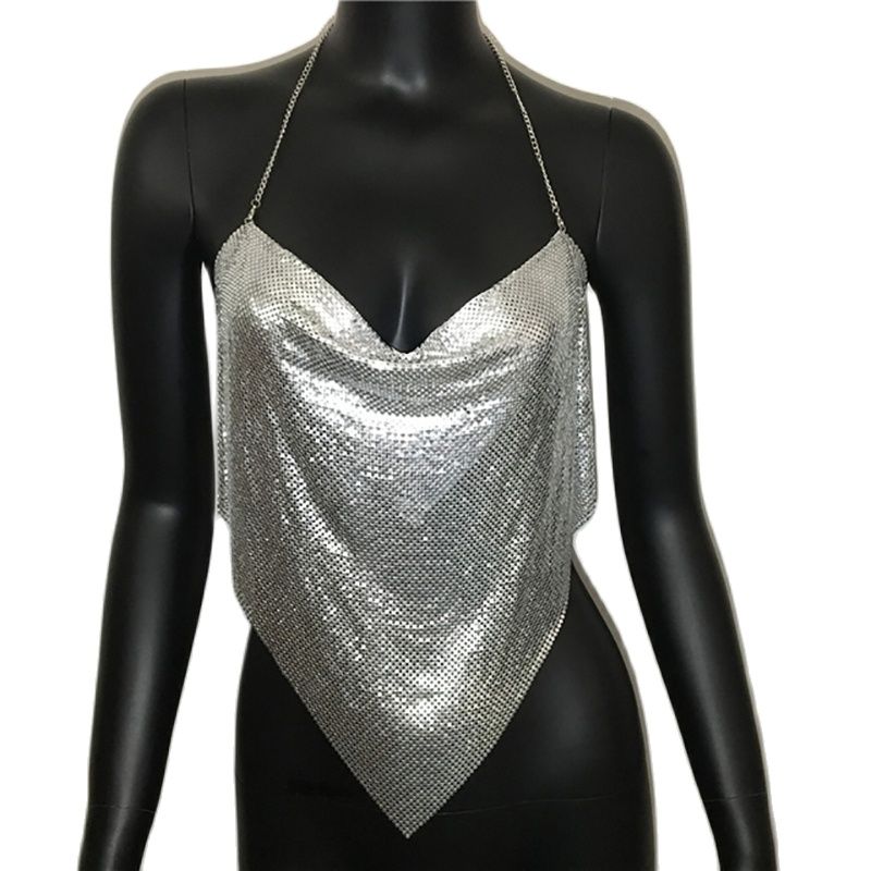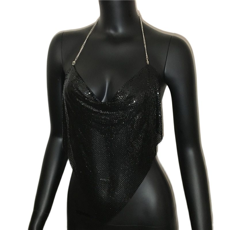 This women's camisole top is a must-have for the holidays. The sequins sparkle brilliantly, and the spaghetti straps provide an elegant look. The halter neckline is perfect for showing off your chest, and the back is open for your skin to breathe. Pair this top with a black skirt or shorts for a classic, yet sexy look.