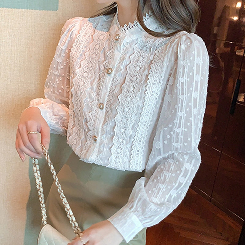 A classic look that you can wear every day. This everyday blouse goes with every outfit and works well with both casual and formal wear. A lace trim at the neckline creates a feminine and flattering look that is sure to get noticed. You'll love this casual style staple that is perfect for any occasion.