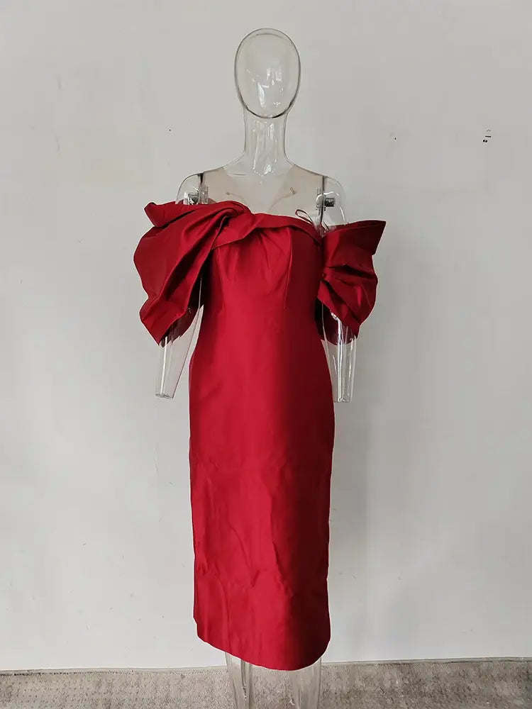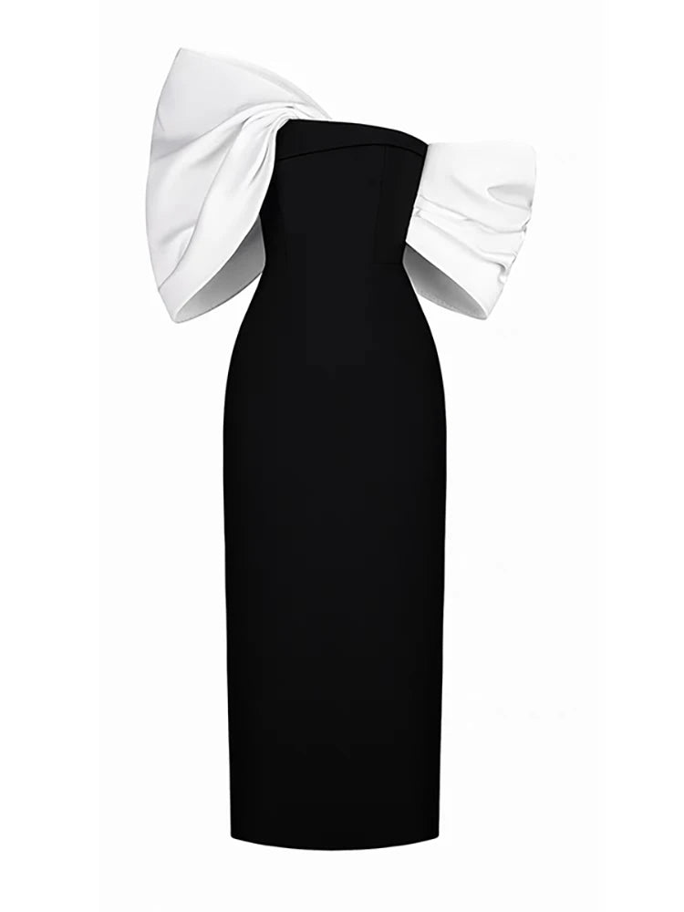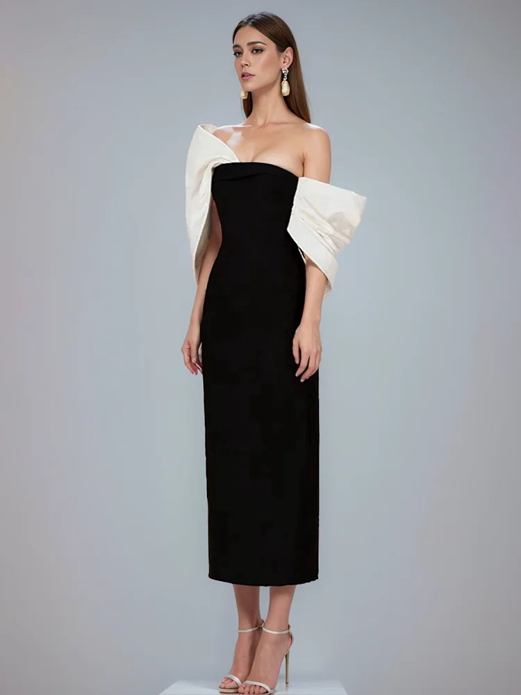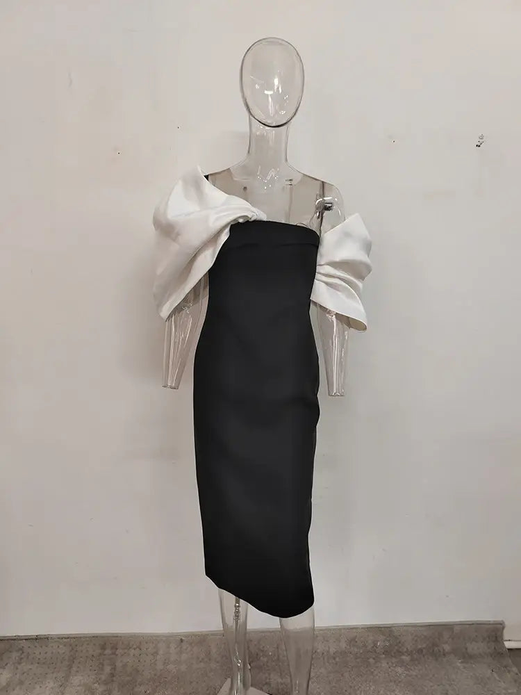 This slim fit midi dress is perfect for dancing the night away! The strapless, bow neckline adds a touch of elegance, while the mid-calf length creates a flattering silhouette. Made with high-quality polyester, this dress is both comfortable and stylish. Stand out on the dance floor with this must-have dress!