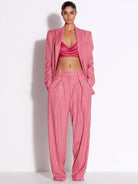 Elevate your style with our Feather In Style Suit. The loose fit and pleated front add flair, while the cotton and polyester material offers comfort and durability. Stand out in this stylish and versatile suit.