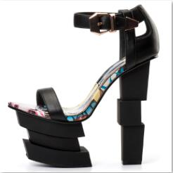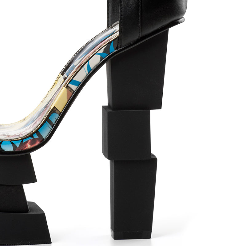 PU Leather Patchwork Art Strange Heels Sandal