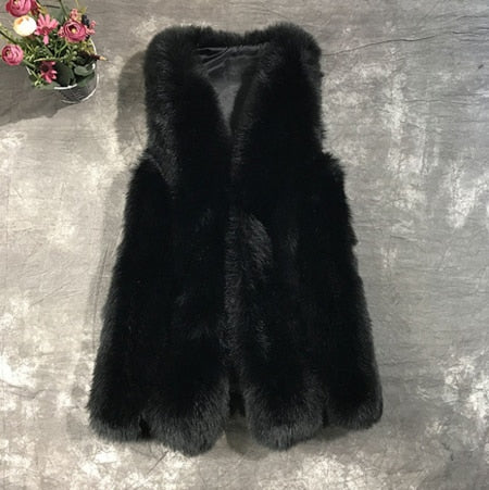Solid Color Sleeveless Coat With Faux Fur Material And V-Neck Collar
