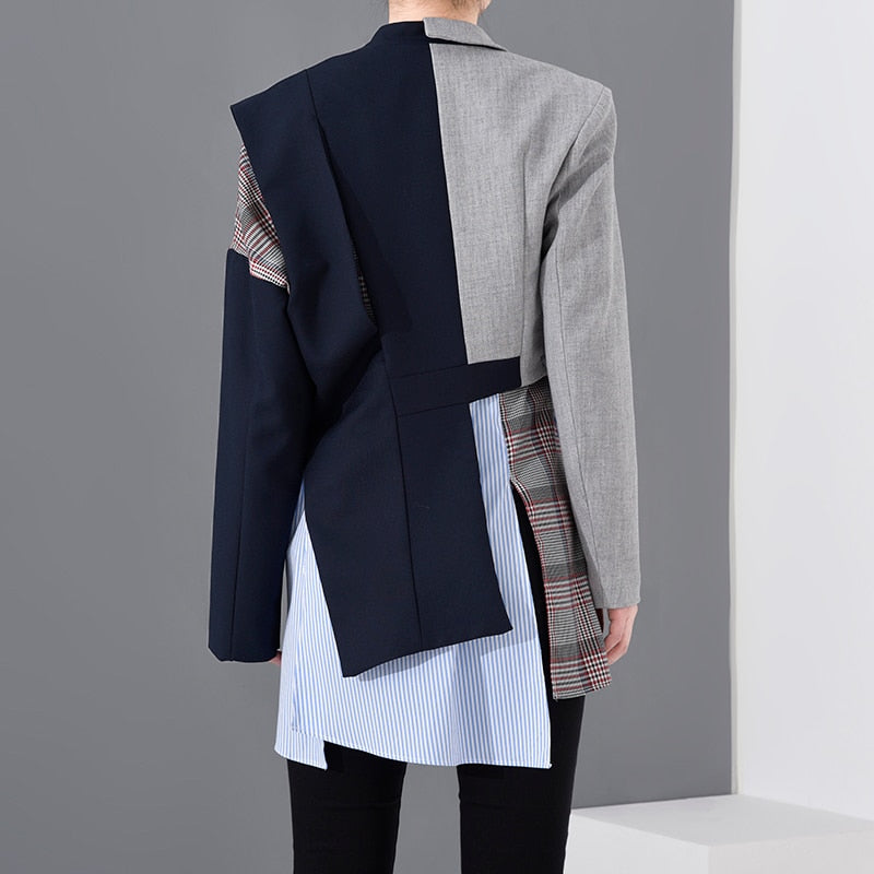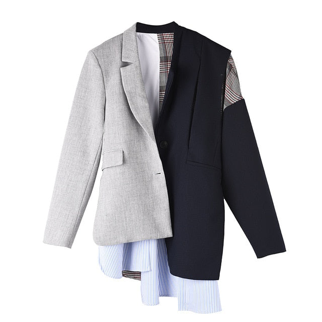 Polyester Single Button Notched Collar Pockets Decoration Blazer