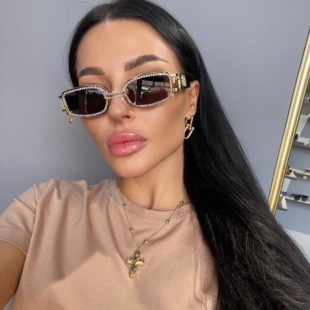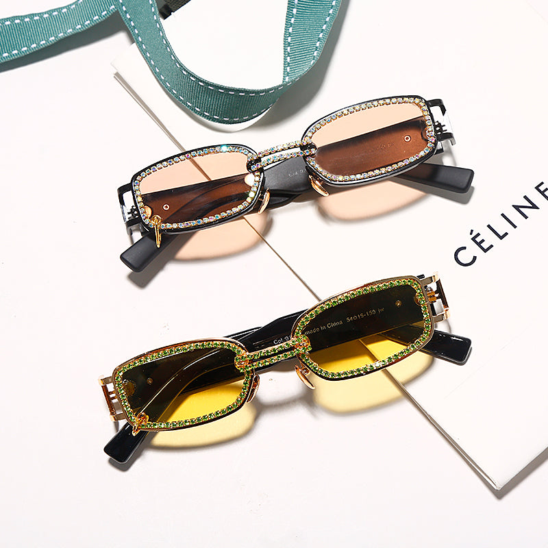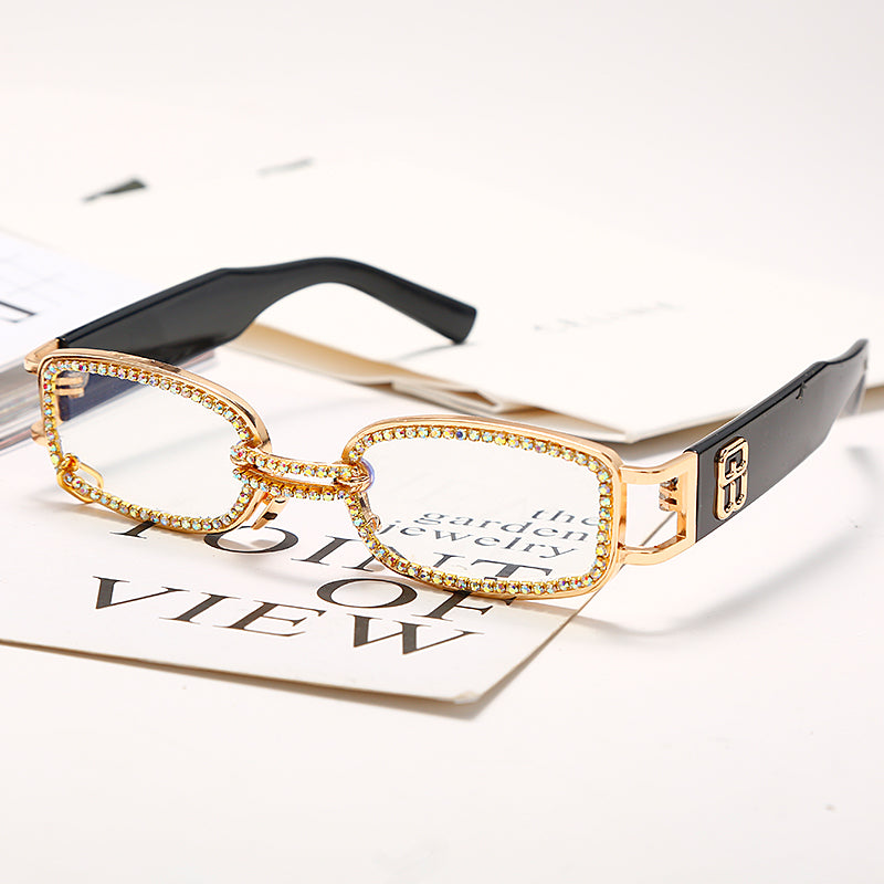 Plastic Titanium Framed Rectangular Sunglasses with UV400 Glass Lenses