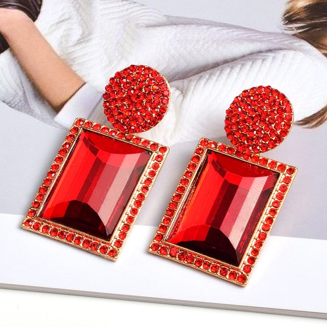 Large Rectangle Rhinestone Drop Dangle Earrings With Zinc Alloy And Stainless Steel Material