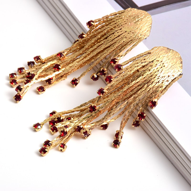 Chain Style Alloy Metal Drop Dangle Earrings with Red Rhinestone