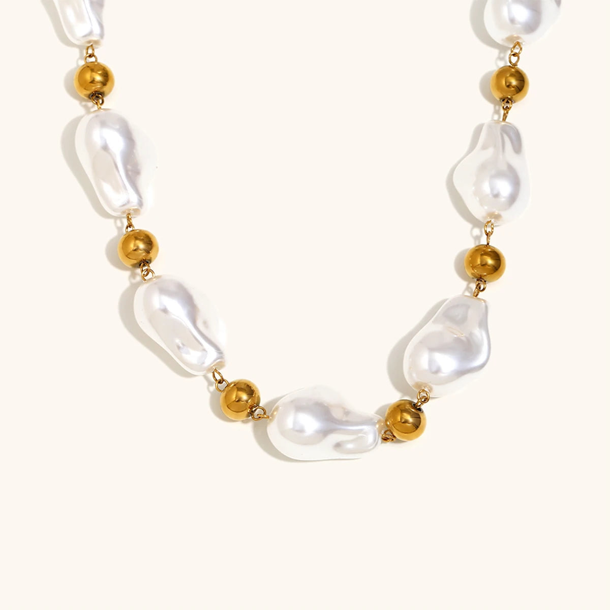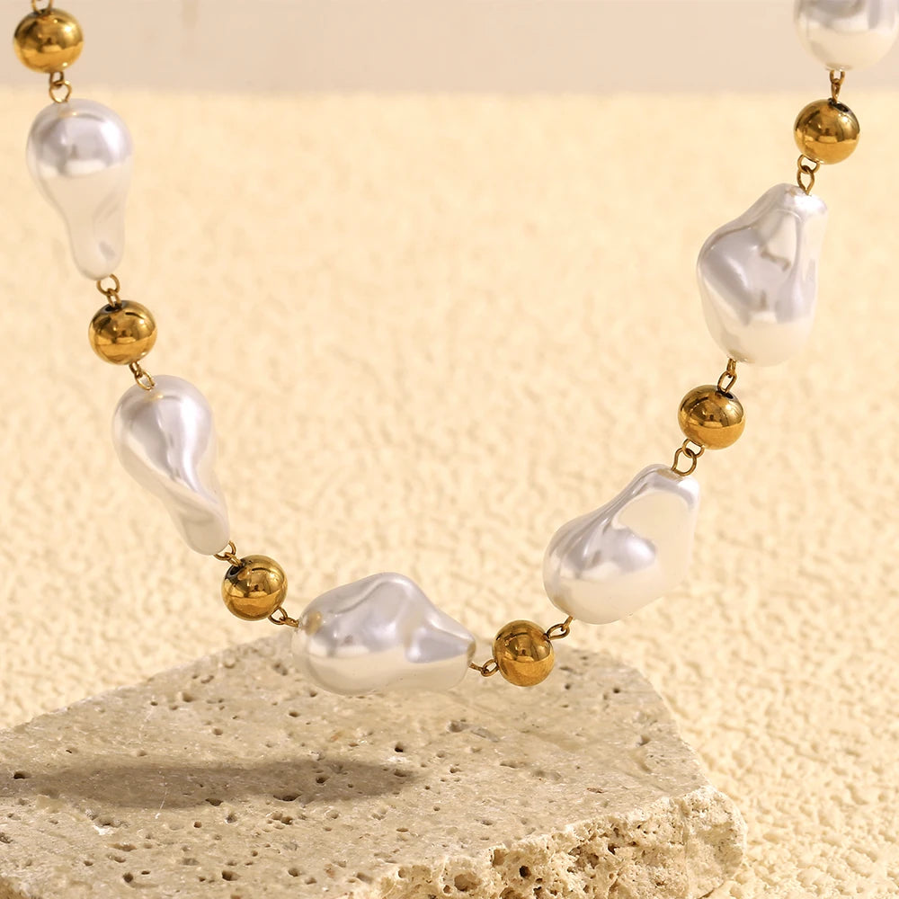The Whisper In Style Beads Necklace combines edgy stainless steel with irregularly shaped faux pearls for a daring twist on classic elegance. This unique design adds bold texture and intrigue, perfect for those who want to stand out with a fearless sense of style.