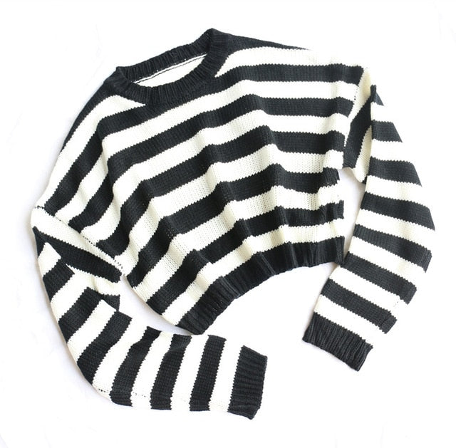 Stripe Cropped Sweater with O-Neck Collar, Acrylic Material, and Knitted Fabric Type