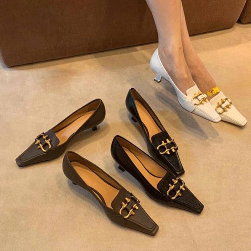 Microfiber Feeling Lucky Low Heeled Kitten Shoes