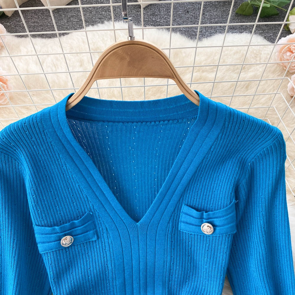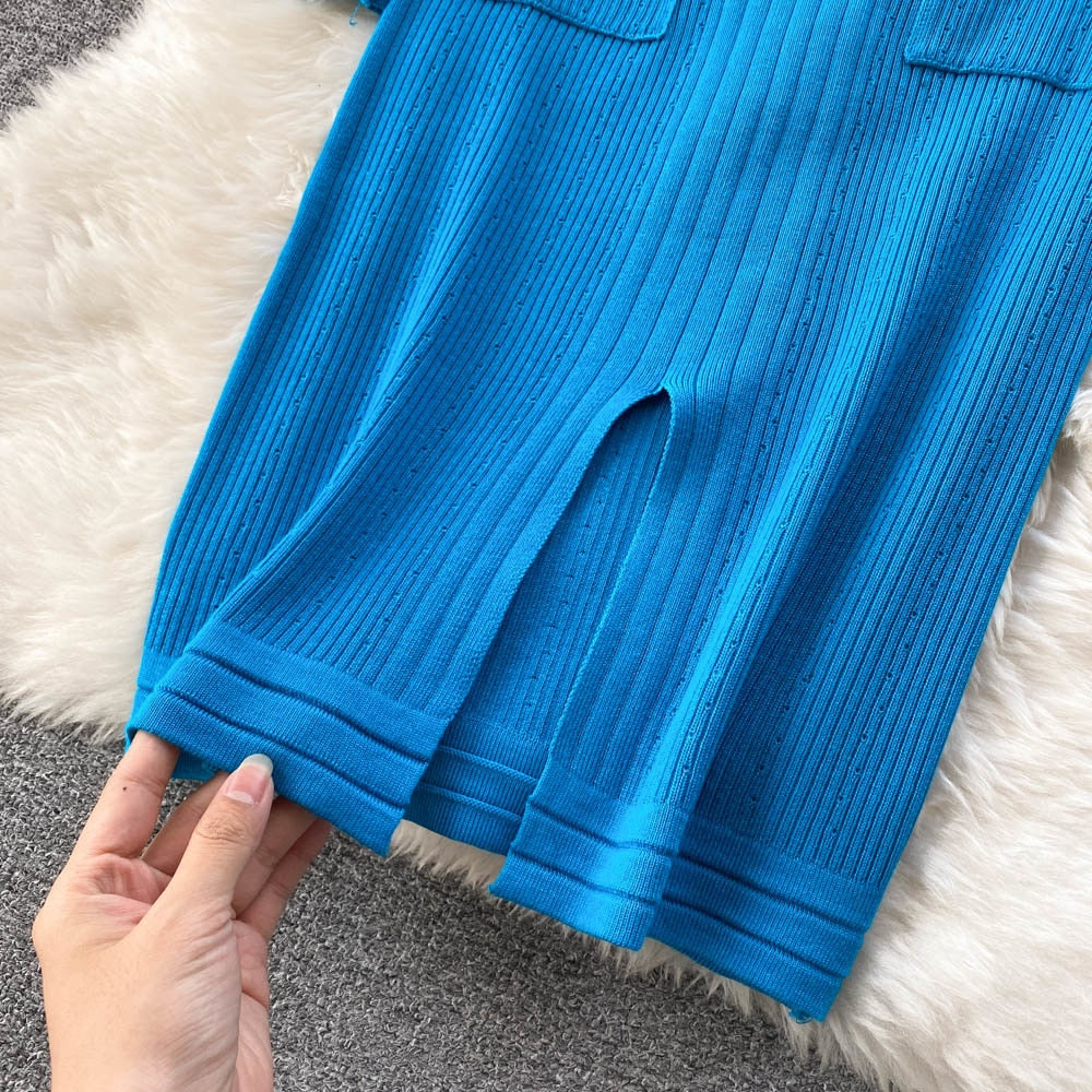 This knitted midi dress has a feminine v-neckline that makes it look effortlessly stylish. Made with a knitted material, this midi-length dress offers a comfortable fit. A front pocket keeps your phone close at hand so it can look fashionable and functional.