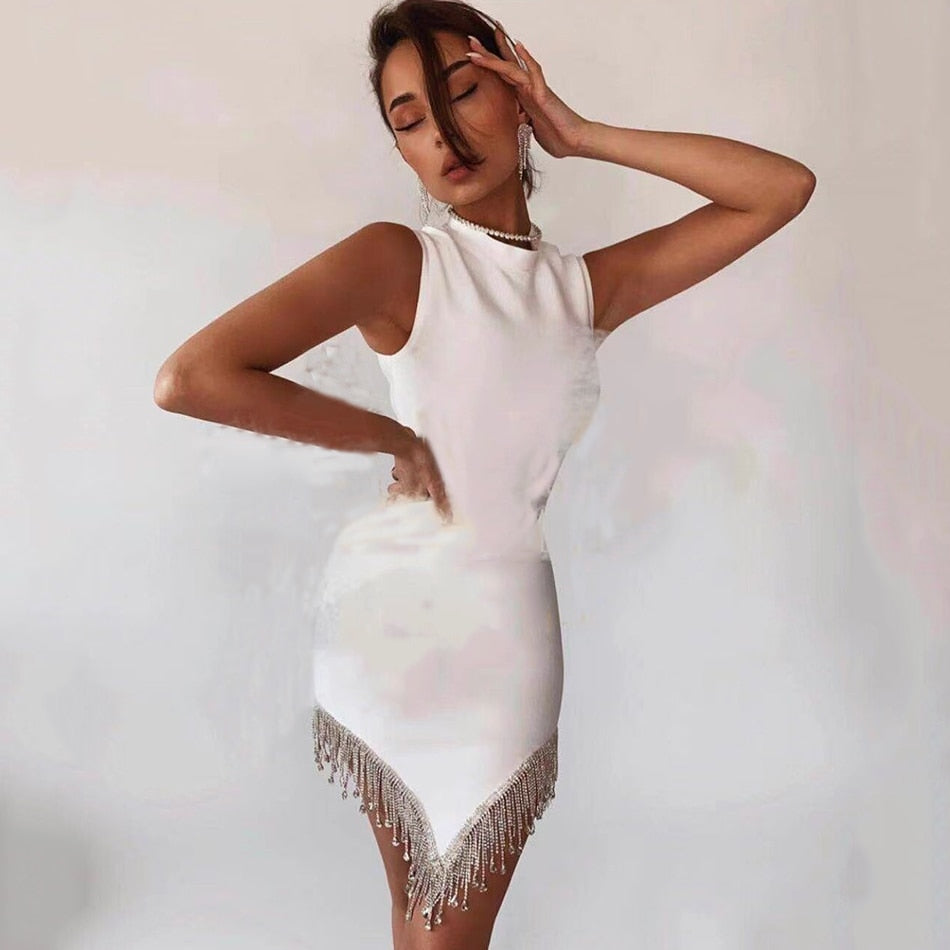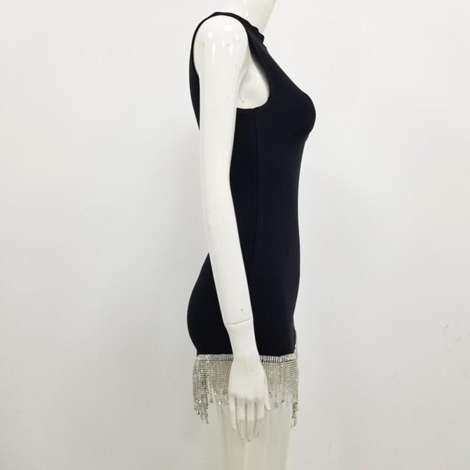 This mini dress is a highly desirable style that is perfect for any occasion. Made of soft, lightweight fabric, this style is perfect for comfort and easy to wear year-round. This feminine color is flattering and vibrant so she can wear it with ease. The sleeveless design is perfect for modesty and is ideal for a variety of occasions. A stylish rhinestone-chain detail adds just the right touch of glamour. This is a must-have fashion staple that is sure to make a big impact.