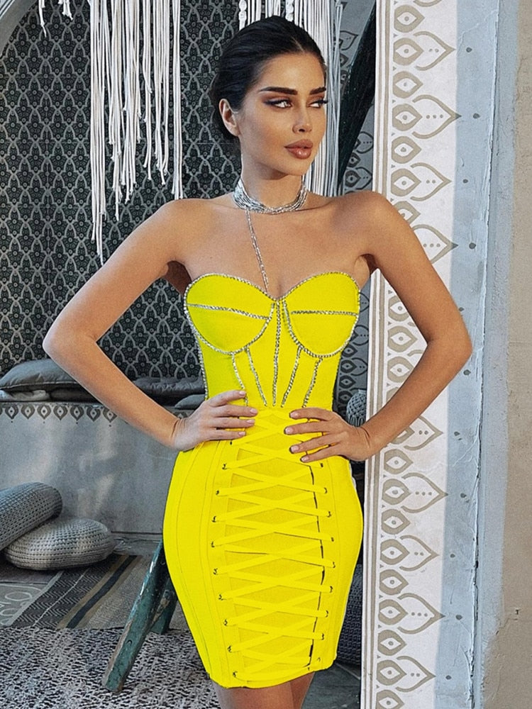 A stylish choice for a fun and flirty look, you'll love the feel of this sweetheart neckline mini dress that has a flattering cut. It features a unique front cross lace design. This simple yet beautiful dress is sure to become a favorite.