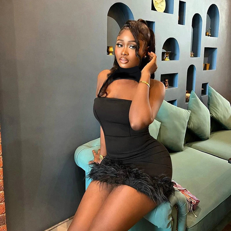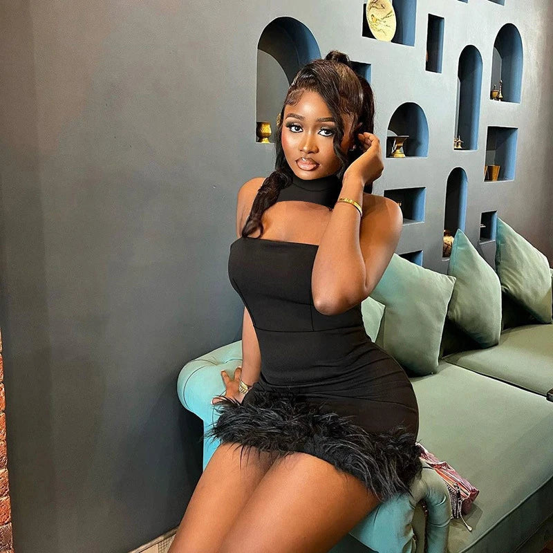 Get ready for a night out in our sexy and club-worthy "Pages Between Us" mini dress. Featuring a trendy O-neckline and flirty feather and hollow out details, this dress will make you stand out. Made from a comfortable cotton and polyester blend, it's also perfect for dancing the night away.