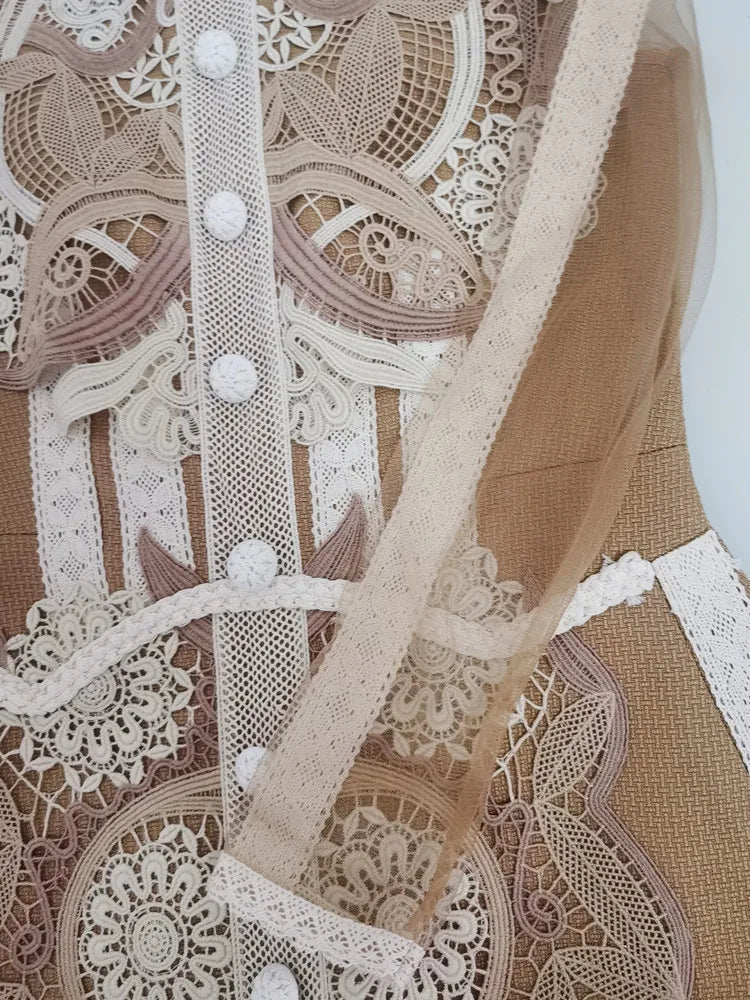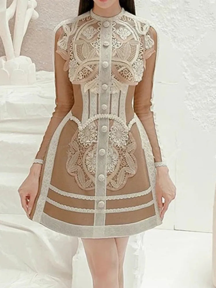 Experience effortless style in our mini dress! With a flirty a-line cut and intricate patchwork and lace details, this mini dress is perfect for any occasion. Made with polyester, it's comfortable and stylish. tale advantages of this must-have piece!
