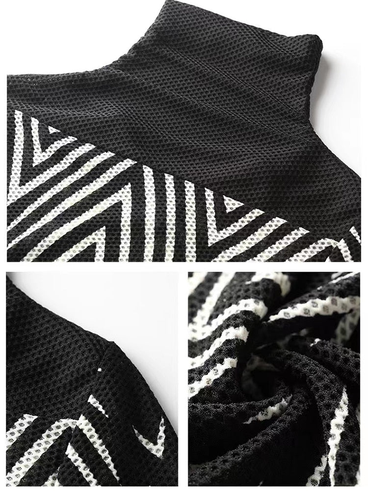 When it comes to stylish black blouses, there's no better choice than this, features a white geometric pattern that looks great with a variety of colors. This fantastic long-sleeved option is finished with a turtleneck collar that adds a stylish finish to a basic design. This piece is a great way to update your formal look.