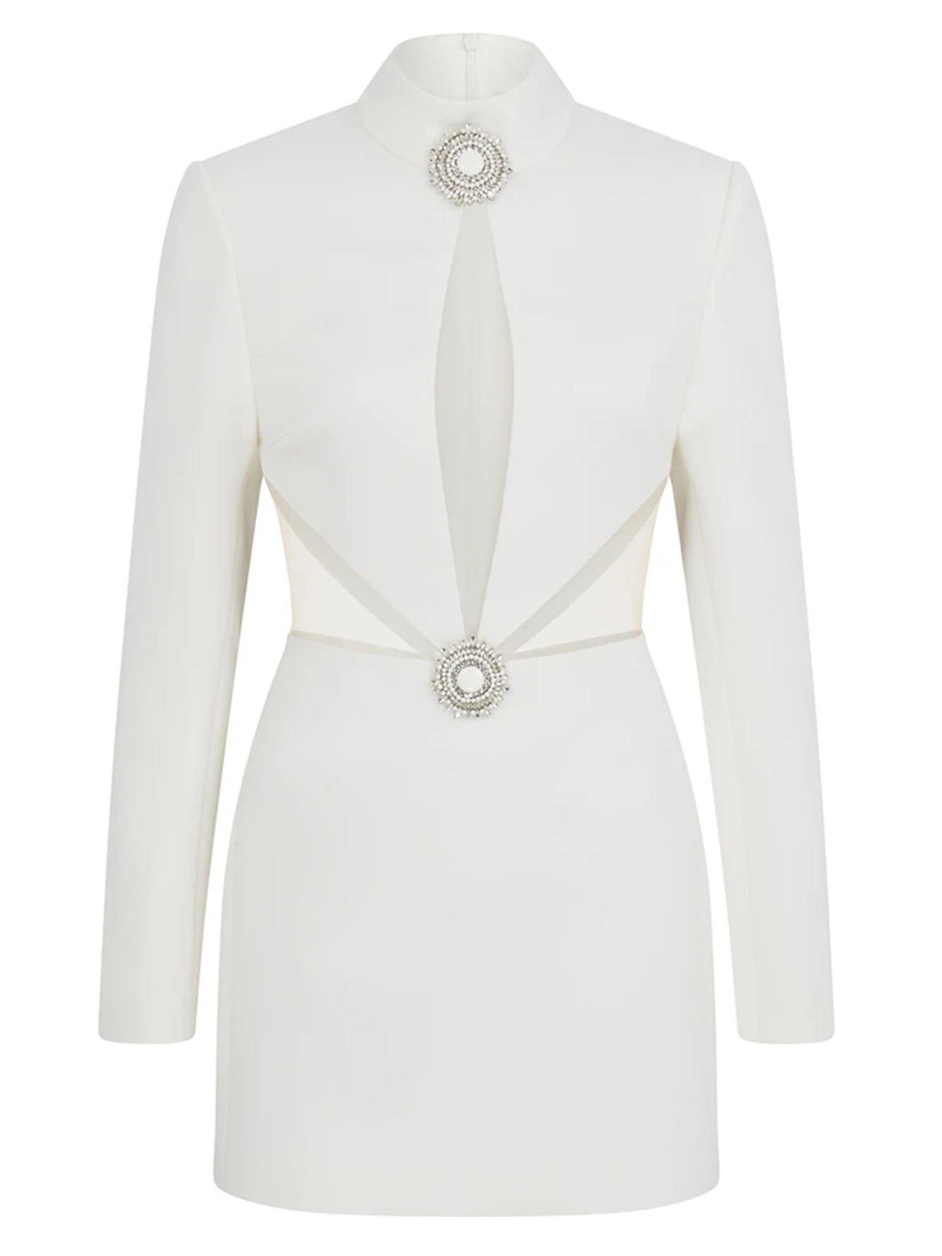Enjoy this feminine and fashionable look with a high o-neckline. A solid white color creates an elegant look that is sure to turn heads. This simple dress is the perfect choice for any formal occasion.