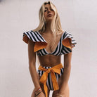 These two-piece bikinis combine a flattering fit with colorful patterns. The cute ruffles and ribbon decoration add a feminine touch that's sure to turn some heads. Get a fun and flirty look for summer by slipping into this cute bikini.