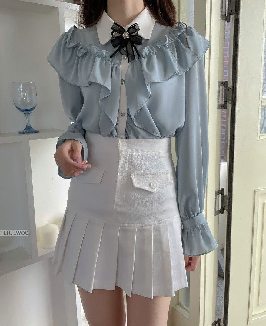 It's the perfect way to add a little bit of interest to any outfit. The soft, chiffon material is breathable and comfortable. Pair with a pair of jeans and cute flats for a fun and stylish look. Lovely ruffle detail adds a touch of feminine style to this versatile piece. Whether you're dressing up for a night out, or simply out shopping, this is the piece that will complete any look. The feminine bow decoration on the blouse is sure to make her smile.