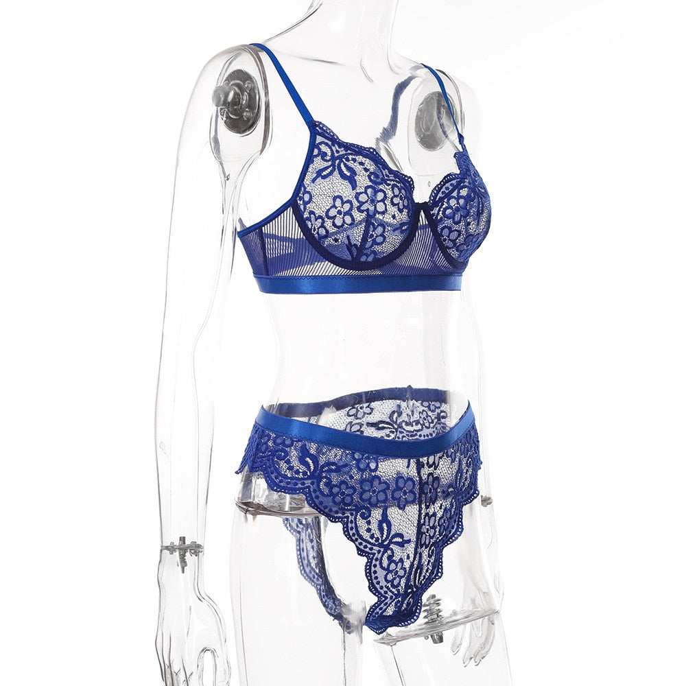 Solid Lace Bra Sets with Flower Pattern and Nylon Material