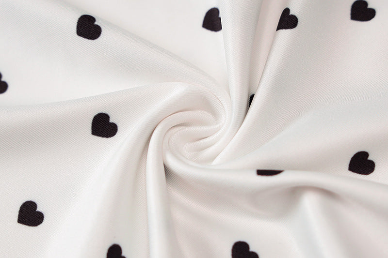 A strapless mini dress that is perfect for any occasion. A chic heart print gives this versatile fashion piece a unique and fashionable look. Designed with a simple strapless design that is sure to become a staple for any wardrobe. The simple design makes it easy to move around in with ease. A playful look that is sure to catch the eye of any passerby.