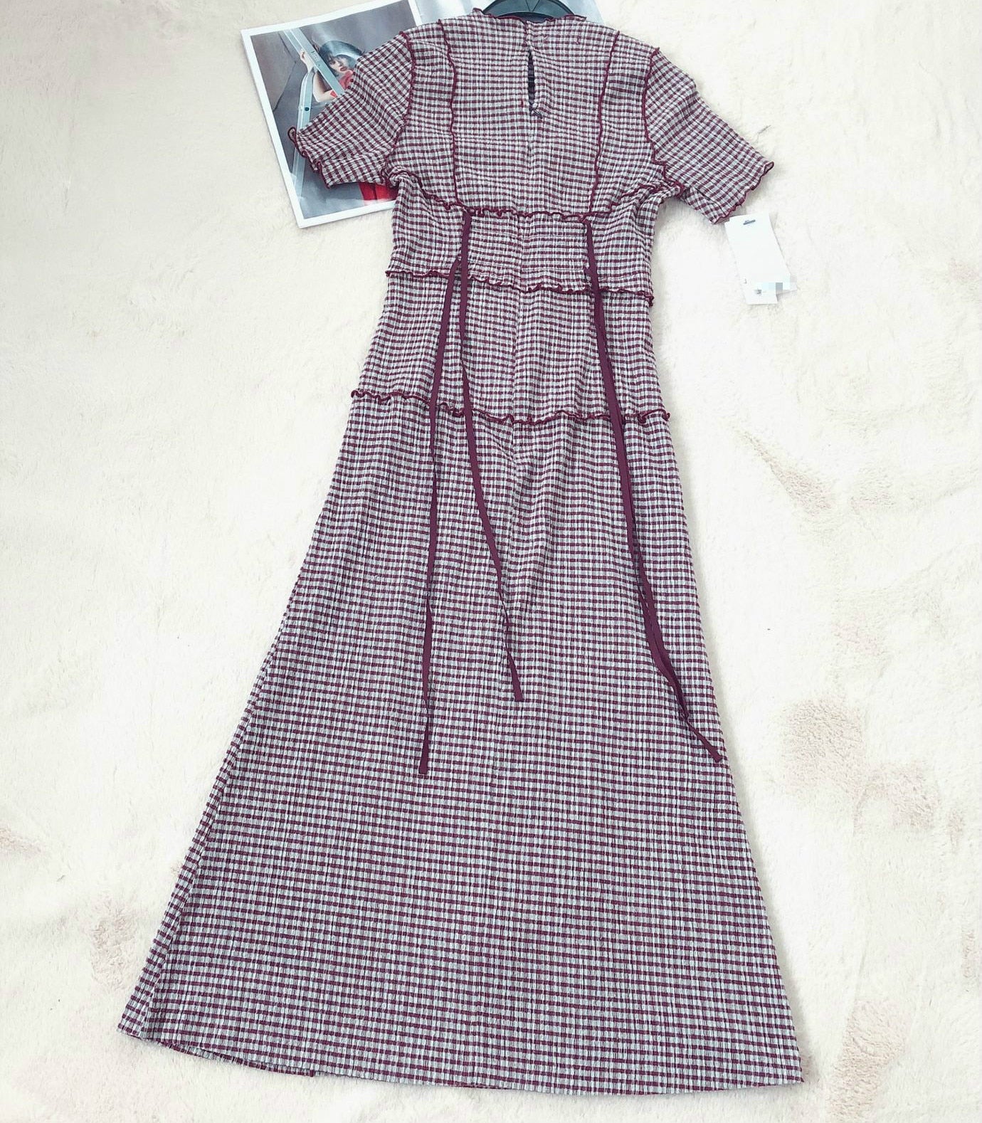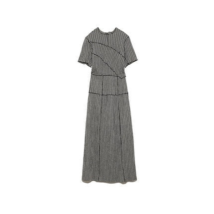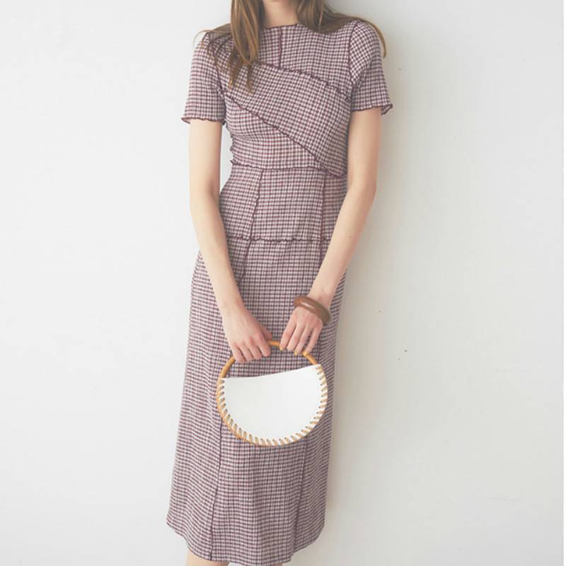 Short-Sleeved O-Neck Maxi Dress with Plaid Pattern