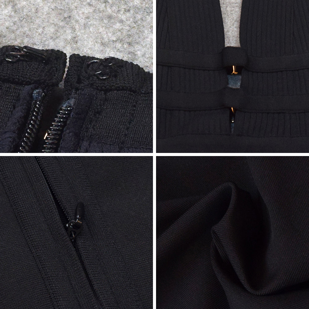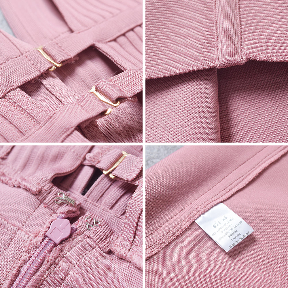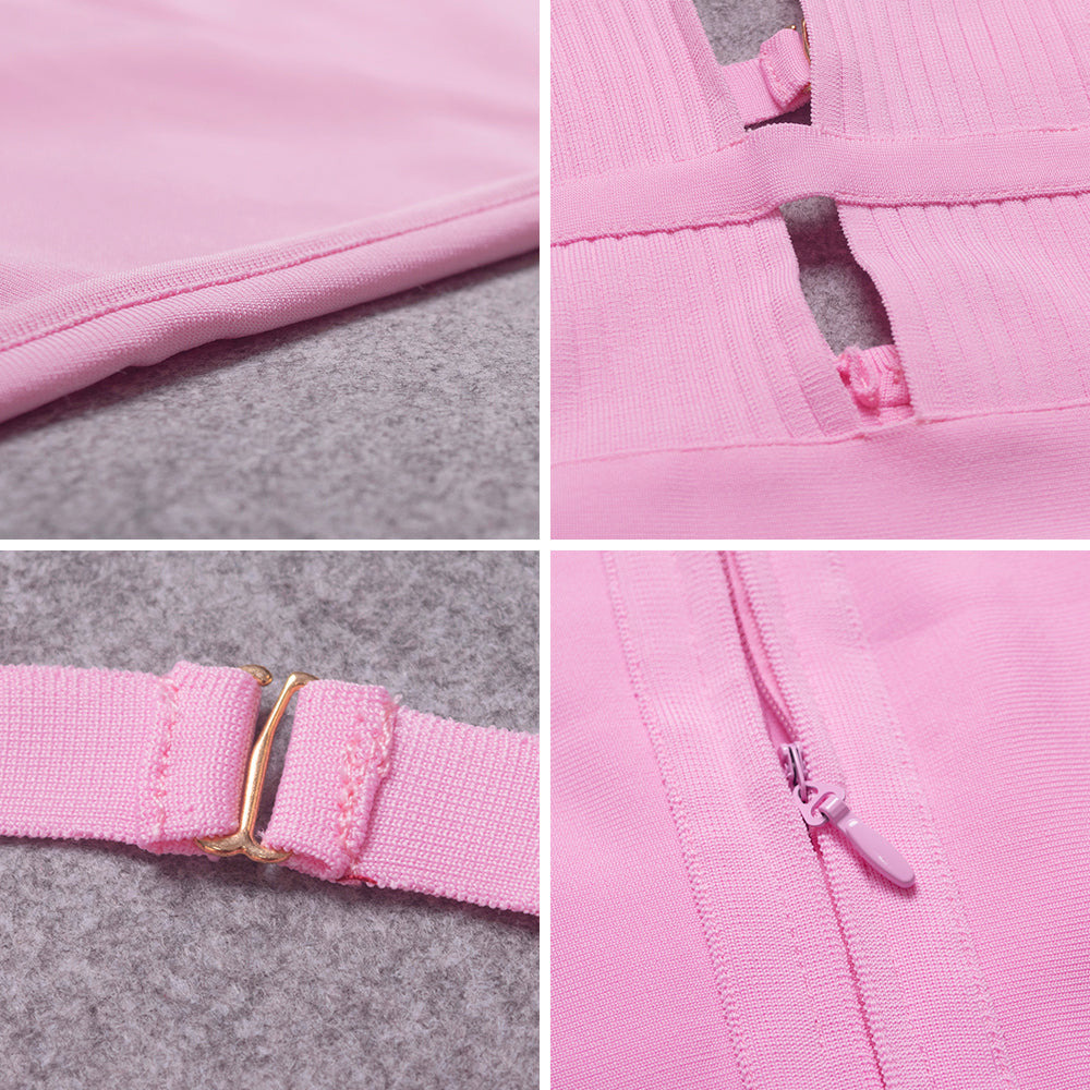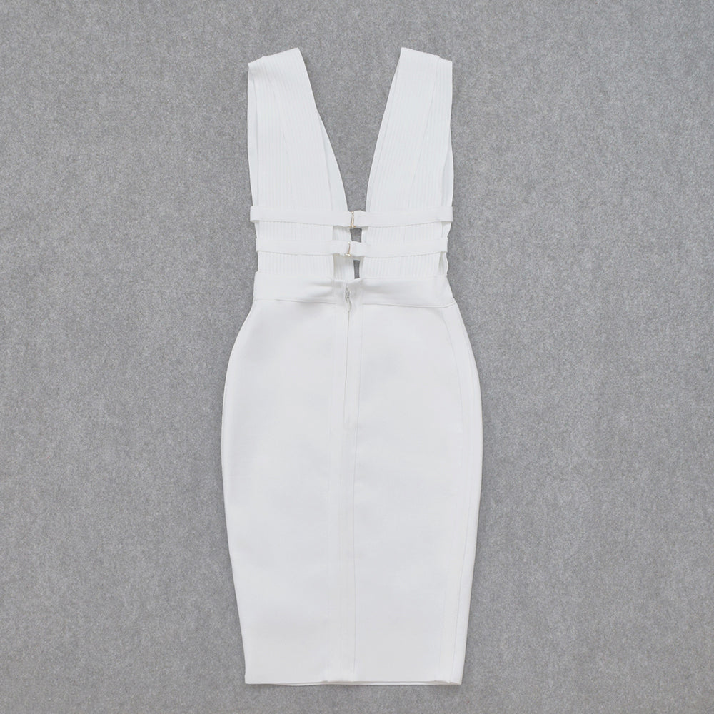 Sleeveless V-Neck Nylon Midi Dress with Hollow Out and Stripe Band Features