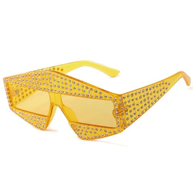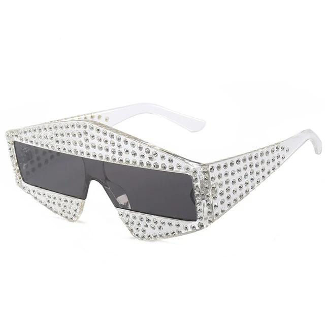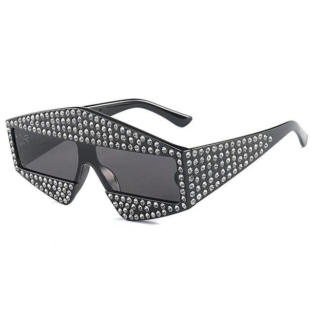 Plastic Frame UV400 Polycarbonate Lens Unique Sunglasses with Rhinestone Decoration