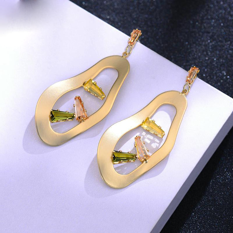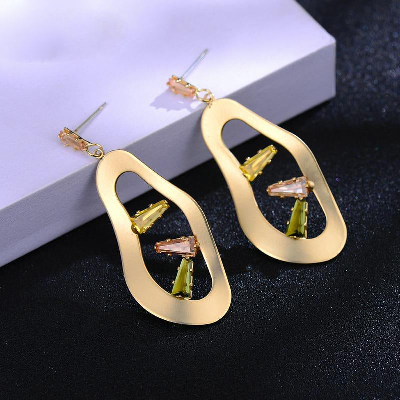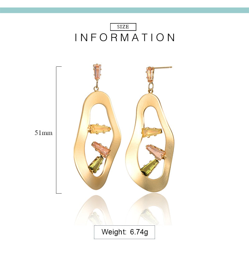 European Geometric Hollow Dangle Earrings Crystals Woman Earrings