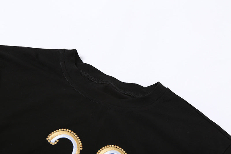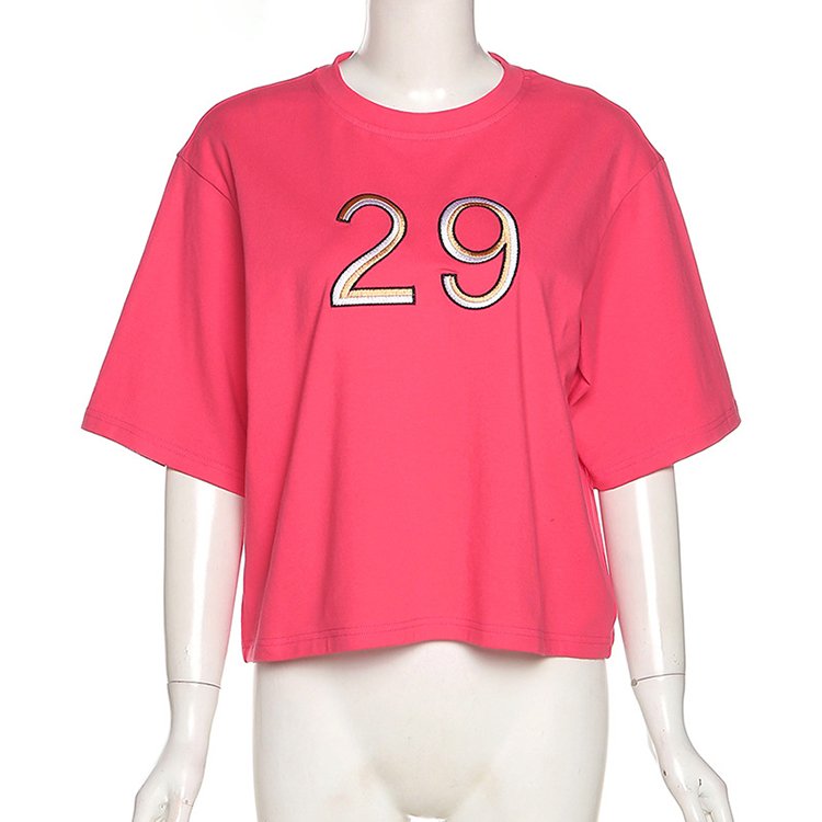 Whether you're lounging around the house or going to the grocery store, this t-shirt will be your go-to for comfort. Made of soft polyester fabric, this tee features an o-neck and embroidery details. The loose fit is perfect for any activity and the short sleeves provide just enough coverage.