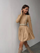 This mini dress is perfect for any special occasion! It features a solid color, knitting material, and a classic O-neck style. The dress is perfect for any night out and will ensure you look your best.
