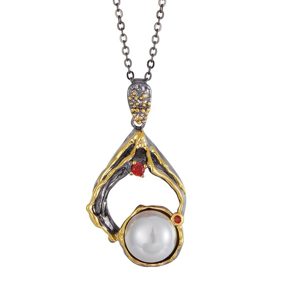These earrings come with a matching necklace, making them a complete jewelry set that is perfect for special occasions or everyday wear. The pendant and earrings feature simulated white pearls, adding a touch of elegance to the bold design.